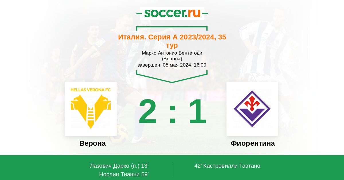 Протокол матча Верона против Фиорентина