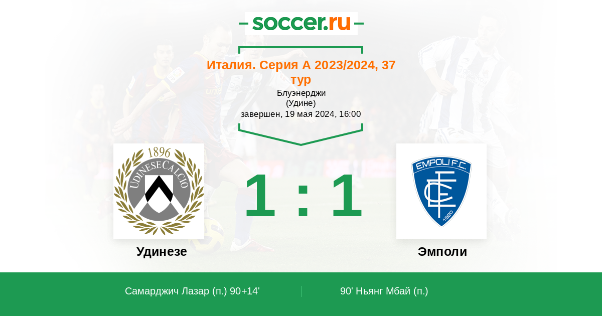 90’ 0:1(П) Ньянг Мбай