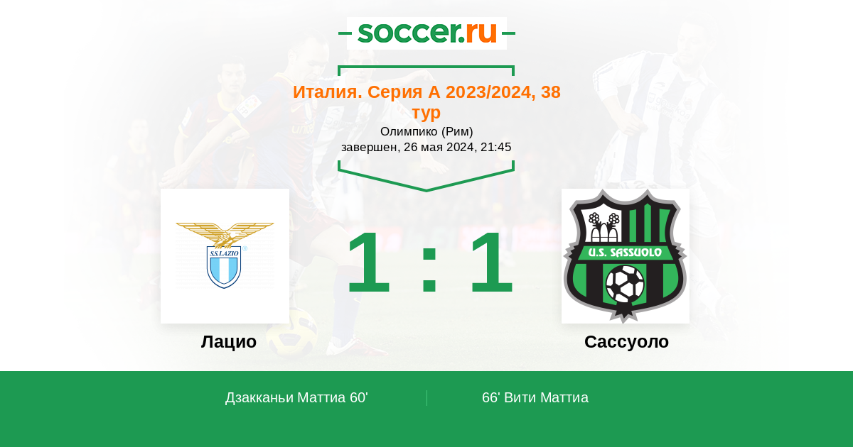Протокол матча Лацио против Сассуоло