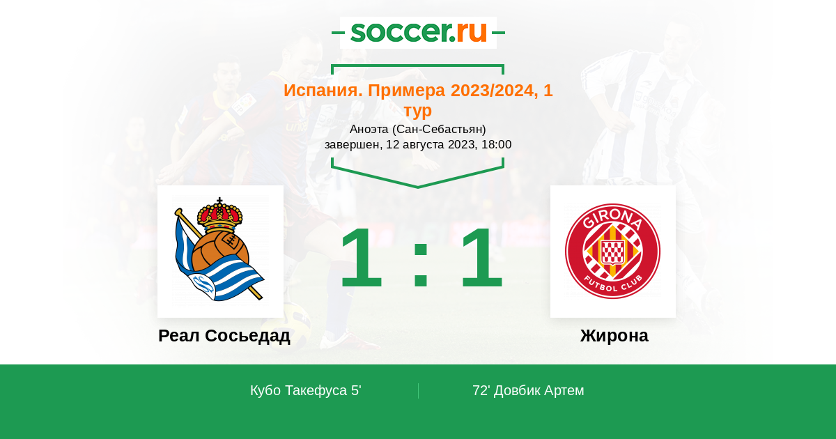 Протокол матча Реал Сосьедад против Жирона