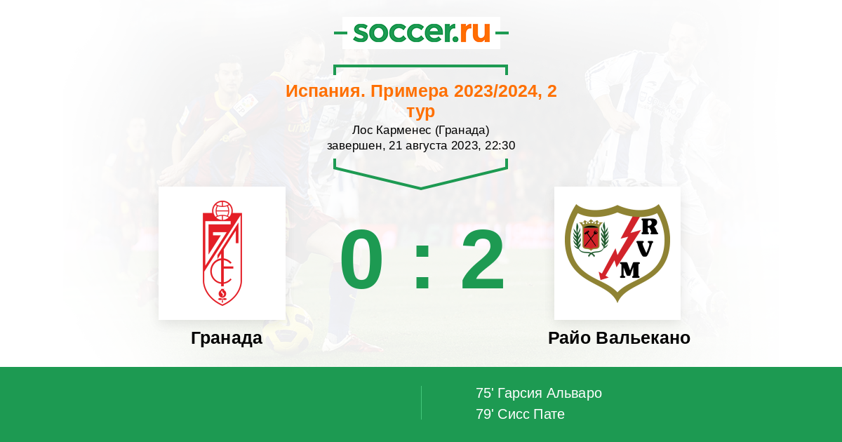 Протокол матча Гранада против Райо Вальекано