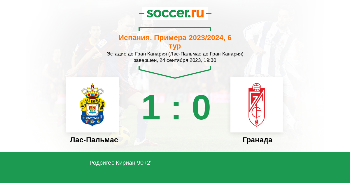Протокол матча Лас-Пальмас против Гранада