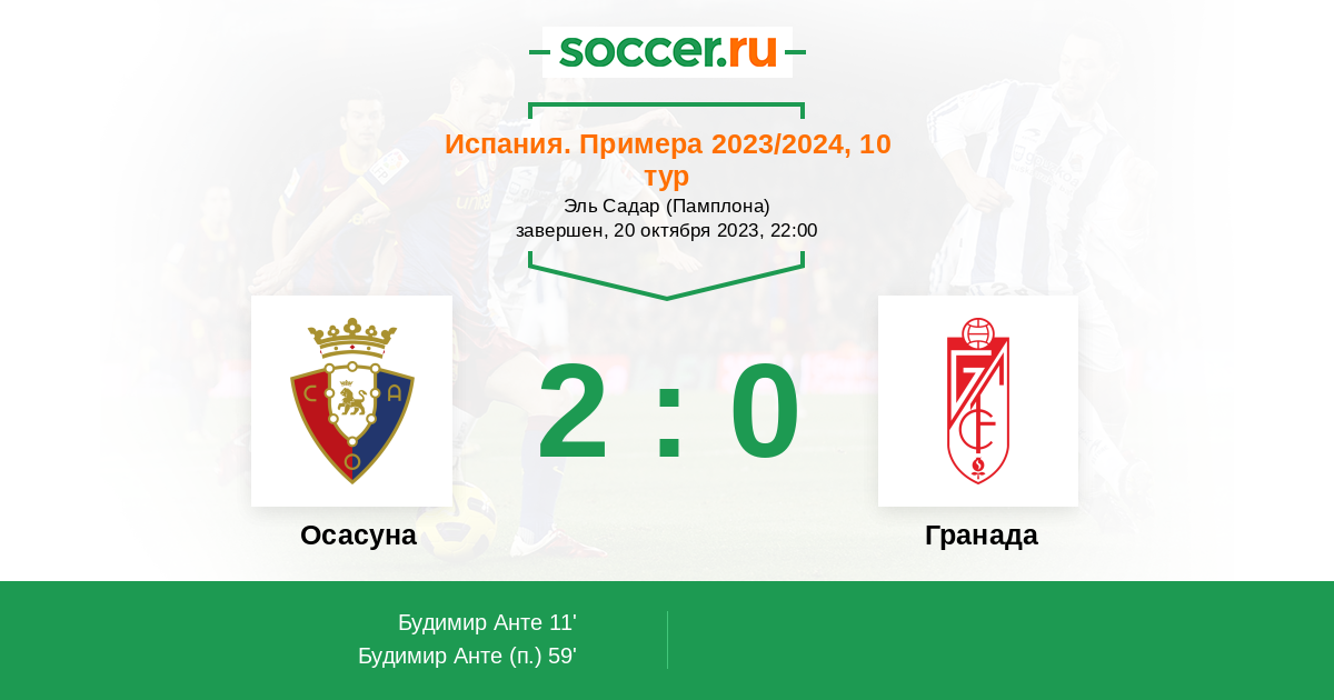 Протокол матча Осасуна против Гранада
