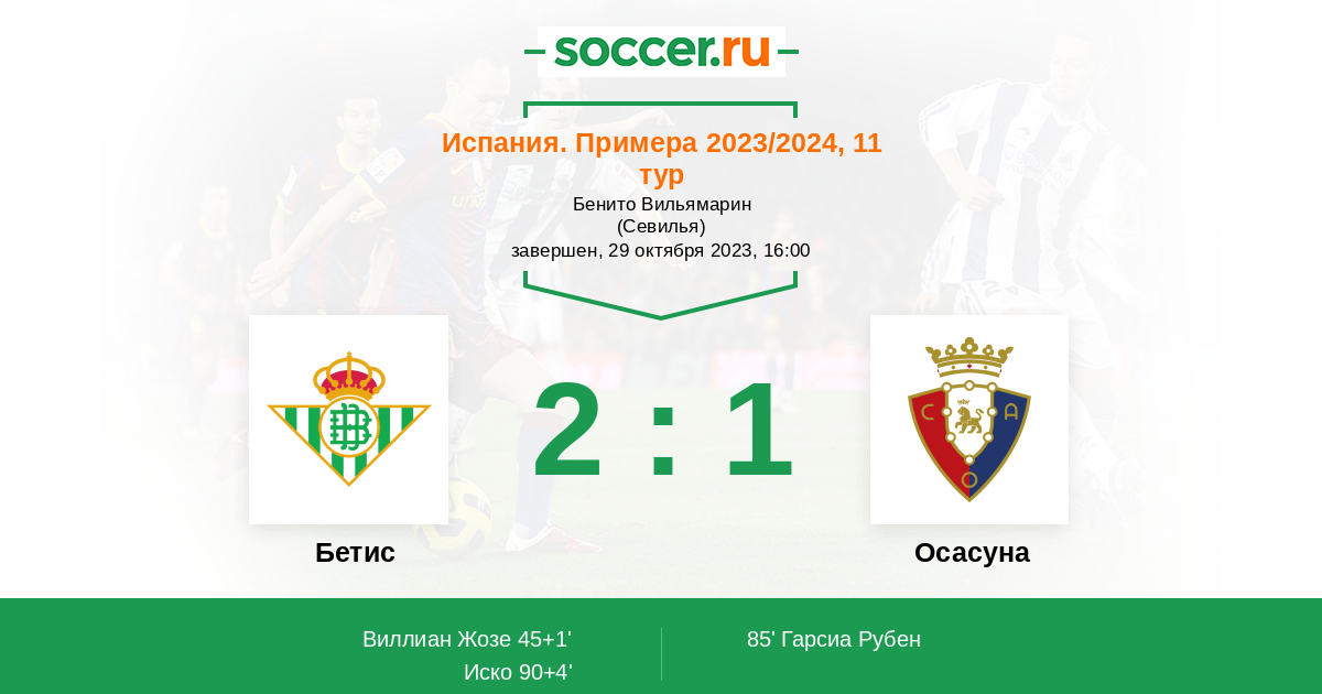Протокол матча Бетис против Осасуна