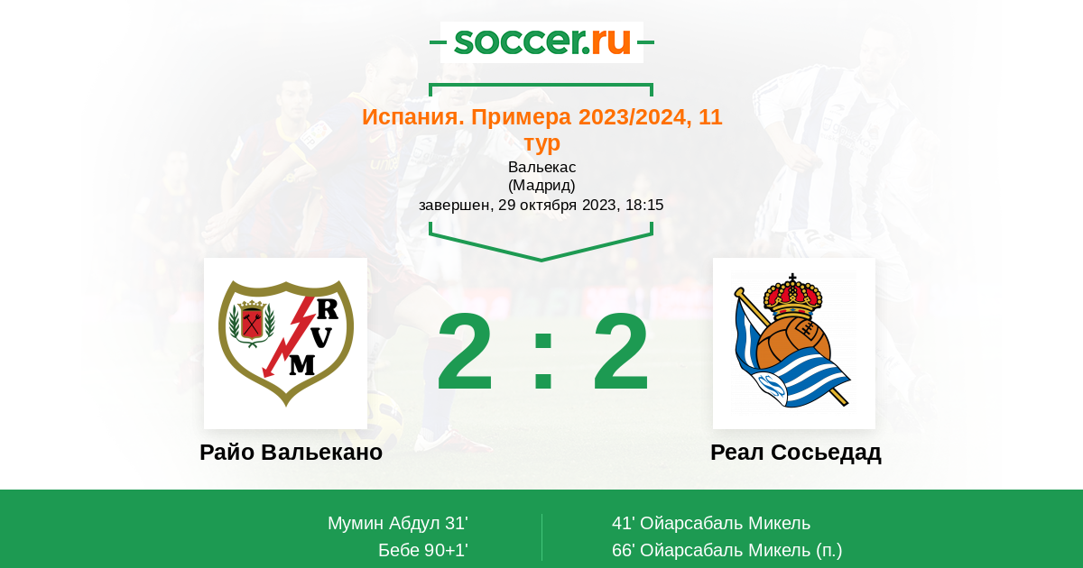 Протокол матча Райо Вальекано против Реал Сосьедад