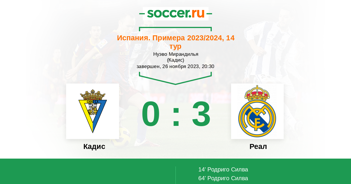 Протокол матча Кадис против Реал