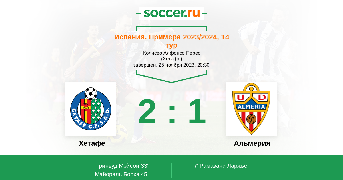 Протокол матча Хетафе против Альмерия