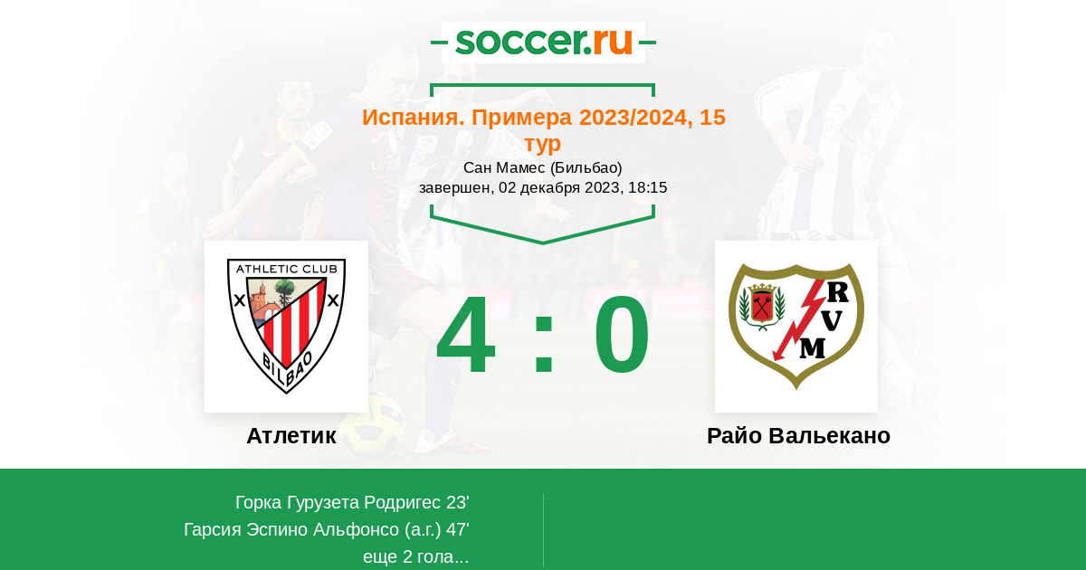 64' (3:0) Уильямс Иньяки (9) (Горка Гурузета Родригес (12))