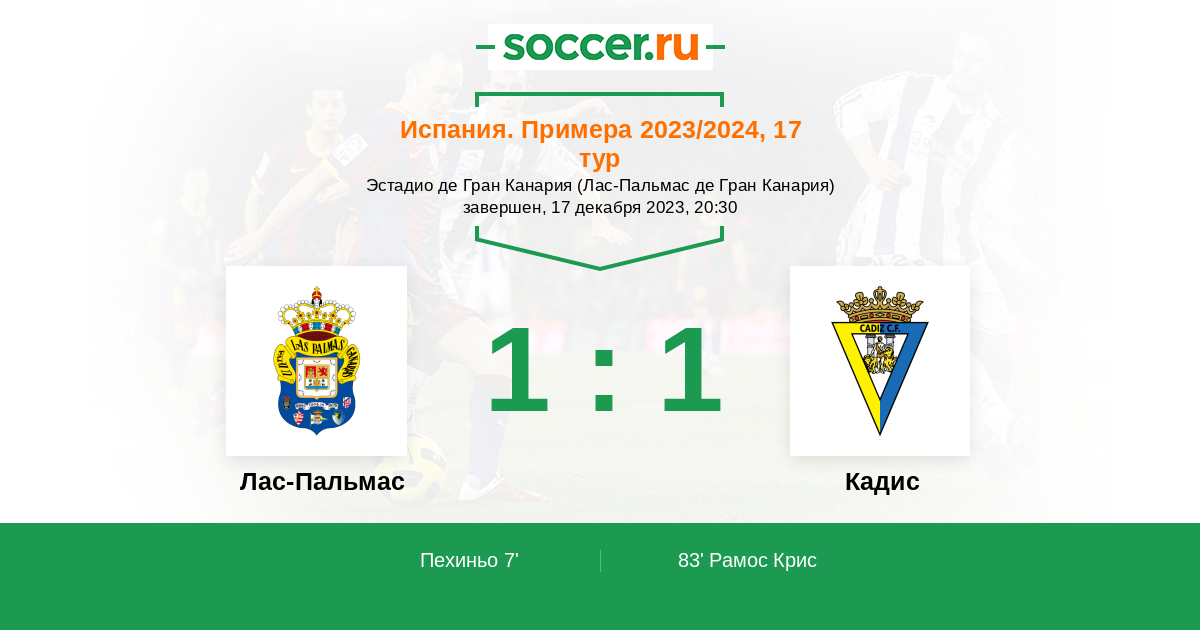 В предыдущем туре хозяева поля смогли на выезде переиграть “Алавес” со счетом 1:0 и такой счет является самым распространенным во время матчей с участием “Лас-Пальмаса”. “Кадис” тоже очень слабый соперник, тем более это домашний матч, а на своем поле команда смогла одержать четыре победы за семь матчей.
