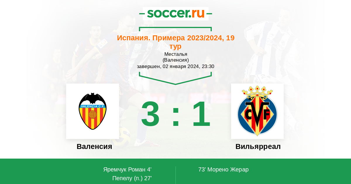 В предстоящем матче 19 - го тура испанской Ла Лиги между командами Валенсия и Вильярреал, на мой взгляд, фаворитом является команда хозяев Валенсия, так как они играют у себя дома. По крайней мере, Валенсия должна забить гол.