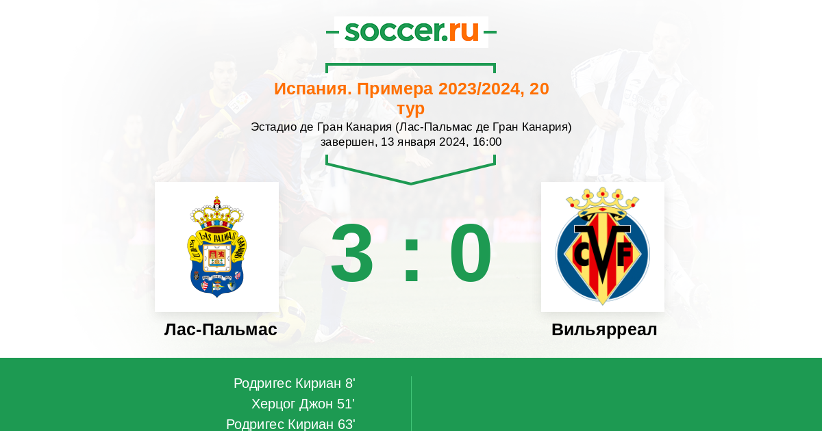 В предстоящем матче 20 - го тура испанской Ла Лиги между командами Лас-Пальмас и Вильярреал, фаворитом на победу является команда хозяев Лас-Пальмас, так как они играют у себя дома на де Гран Канария.