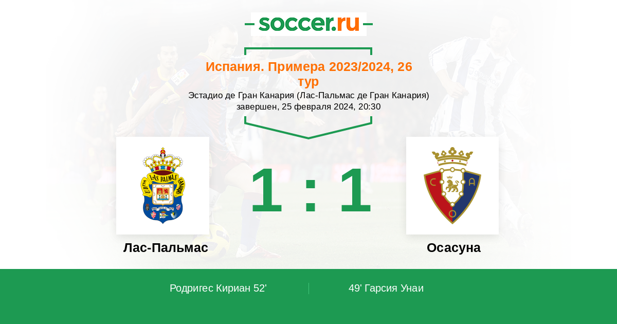 Протокол матча Лас-Пальмас против Осасуна