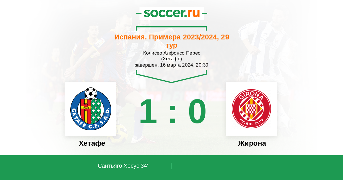 Протокол матча Хетафе против Жирона
