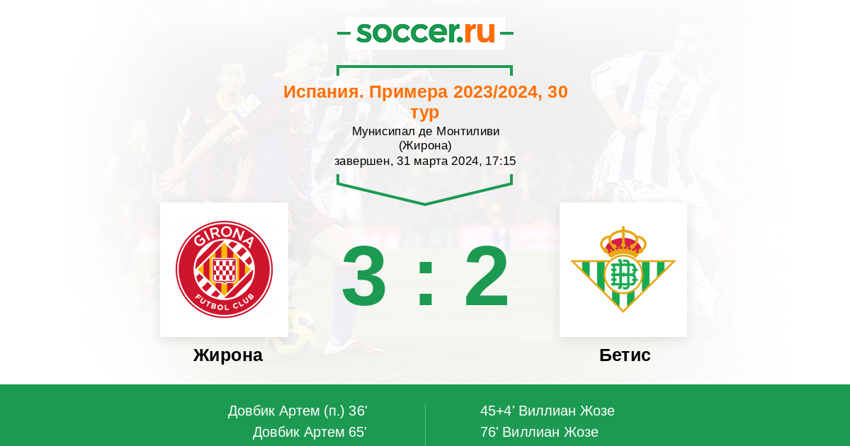 Протокол матча Жирона против Бетис