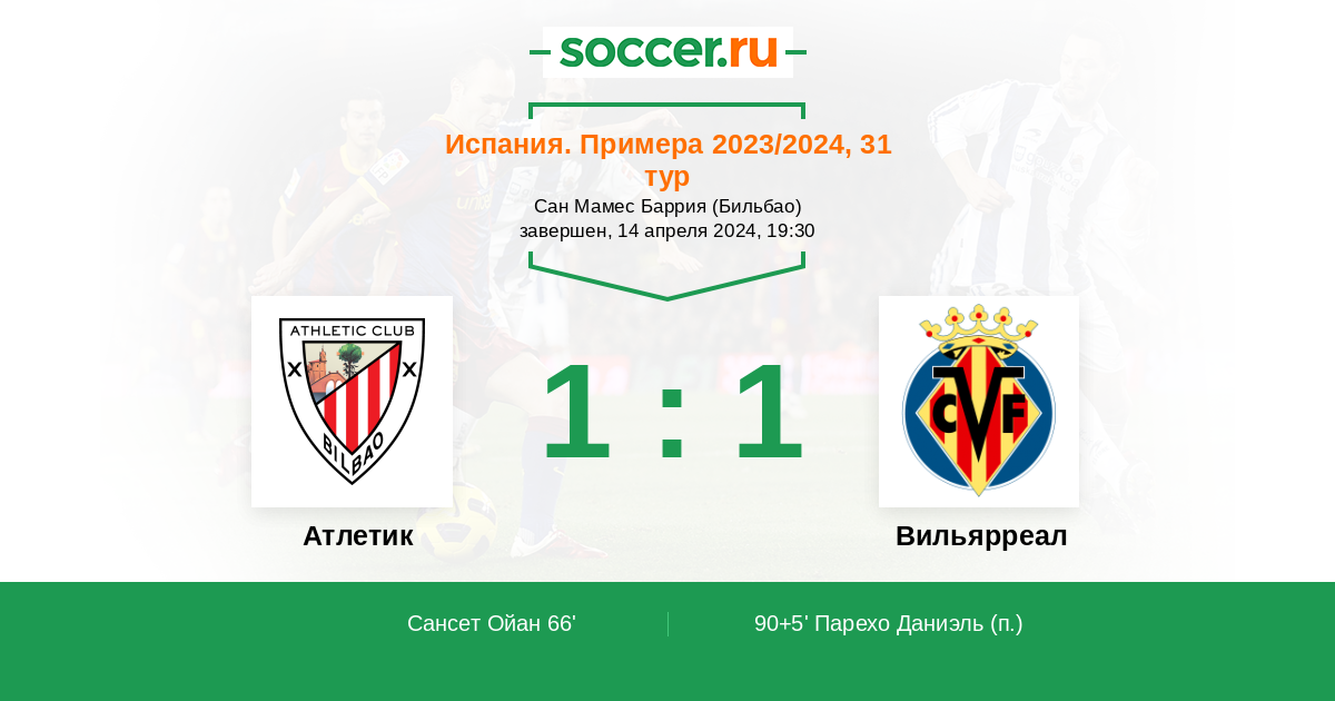 Протокол матча Атлетик против Вильярреал