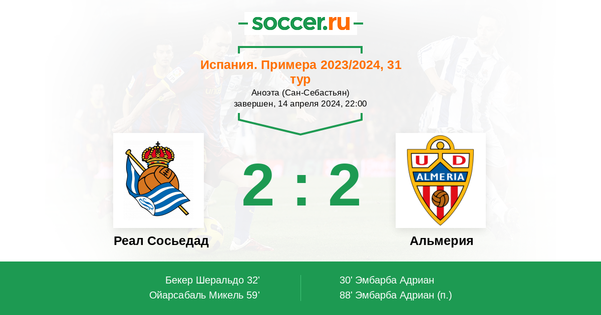 Протокол матча Реал Сосьедад против Альмерия