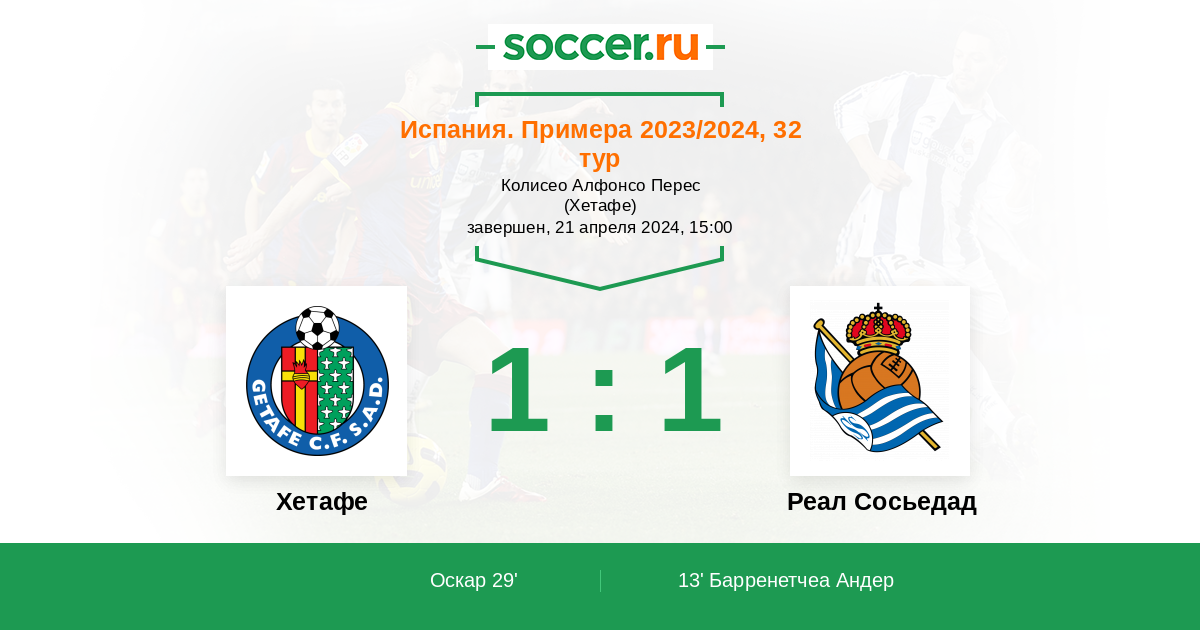 Протокол матча Хетафе против Реал Сосьедад