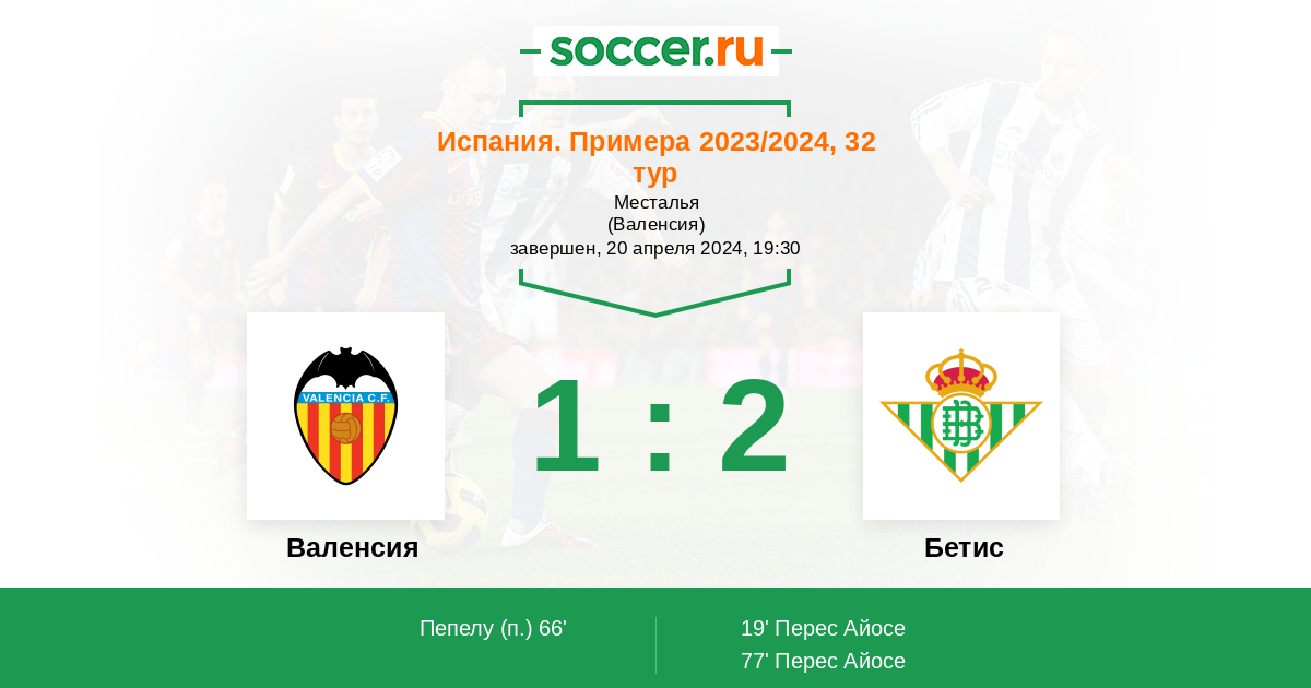 Протокол матча Валенсия против Бетис