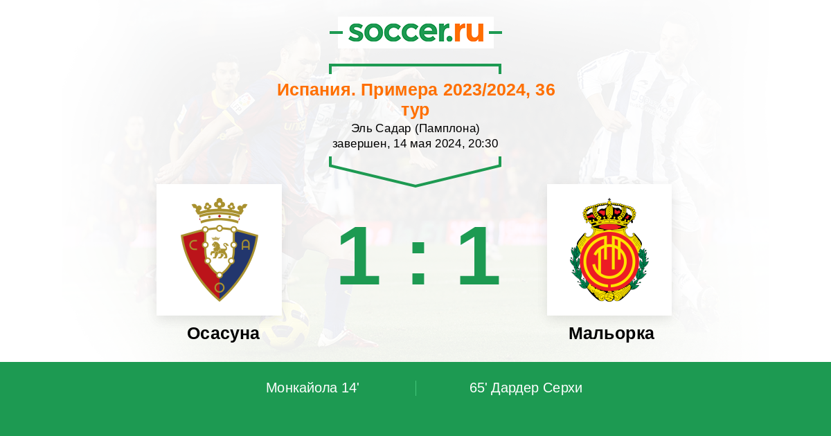 "Островитяне" на выезде смогли одержать всего лишь одну победу за 17 игр. "Мальорка" сильна дома, а на выезде у команды мало что получается. Да, мотивации чуть больше у гостей, но "Осасуна" не намерена дома так просто отдавать очки, тем более, что команда стремится реабилитироваться за серию неудачных результатов.