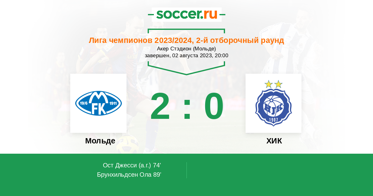 Протокол матча Мольде против ХИК