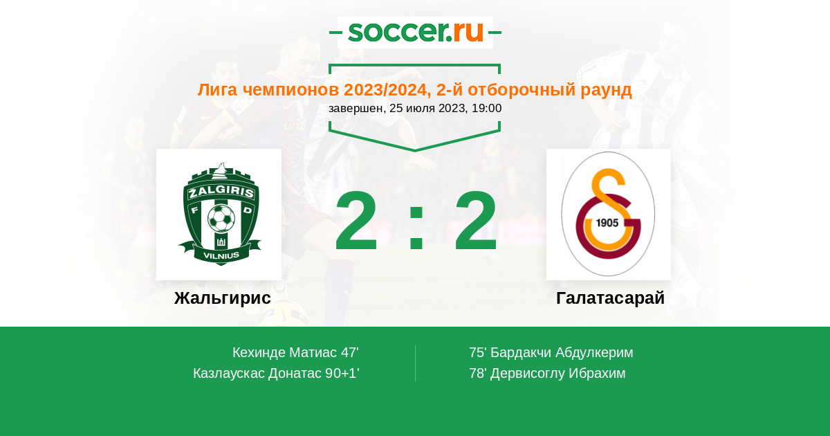Протокол матча Жальгирис против Галатасарай