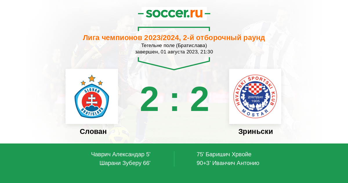 Протокол матча Слован против Зриньски