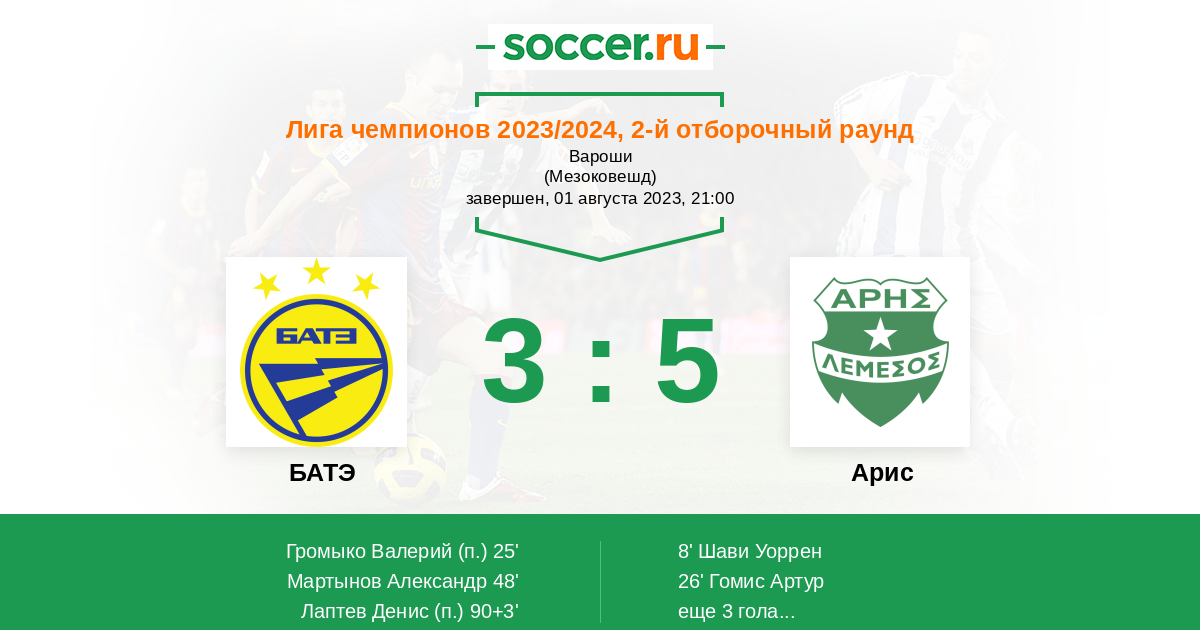 Протокол матча БАТЭ против Арис
