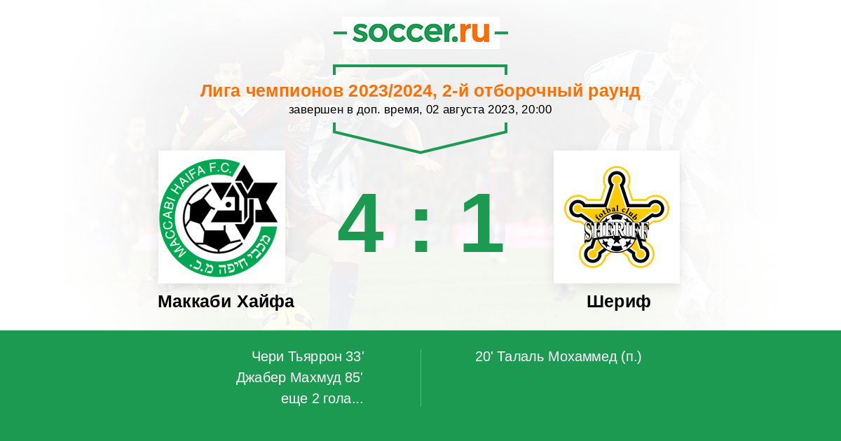 Протокол матча Маккаби Хайфа против Шериф