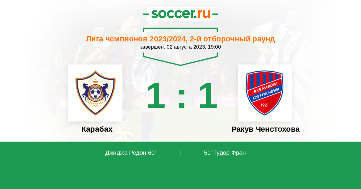 Протокол матча Карабах против Ракув Ченстохова