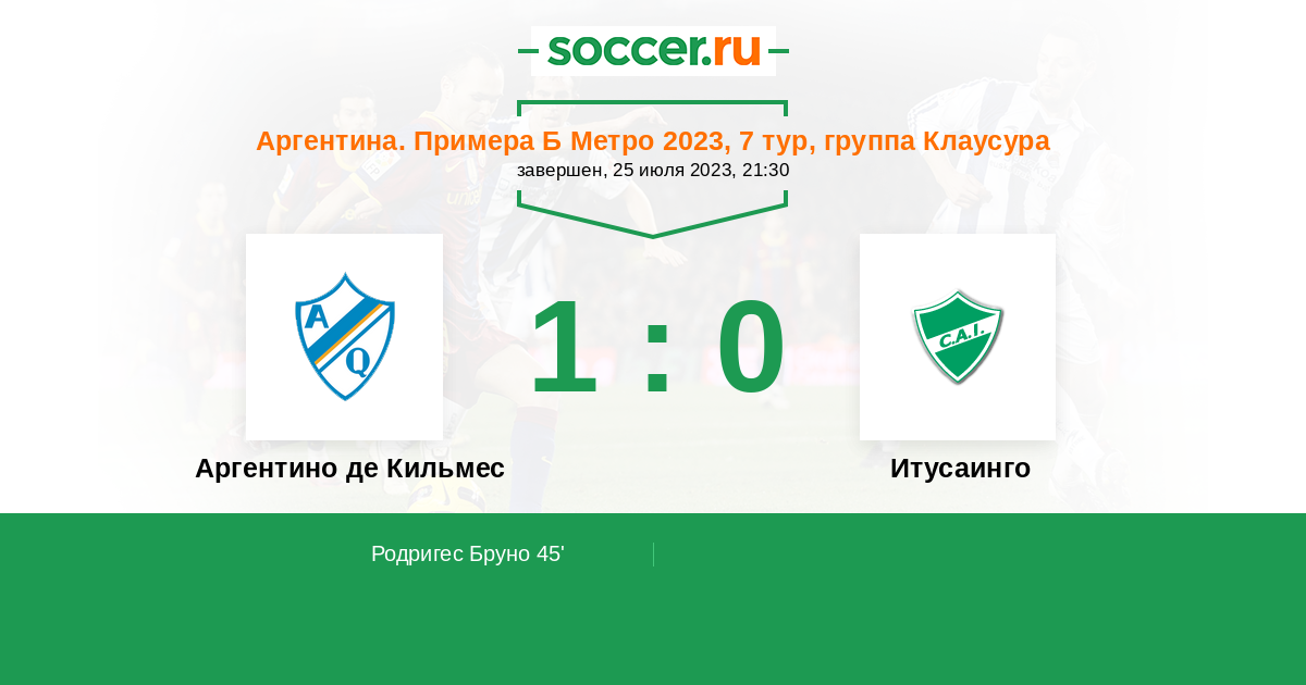 Протокол матча Аргентино де Кильмес против Итусаинго