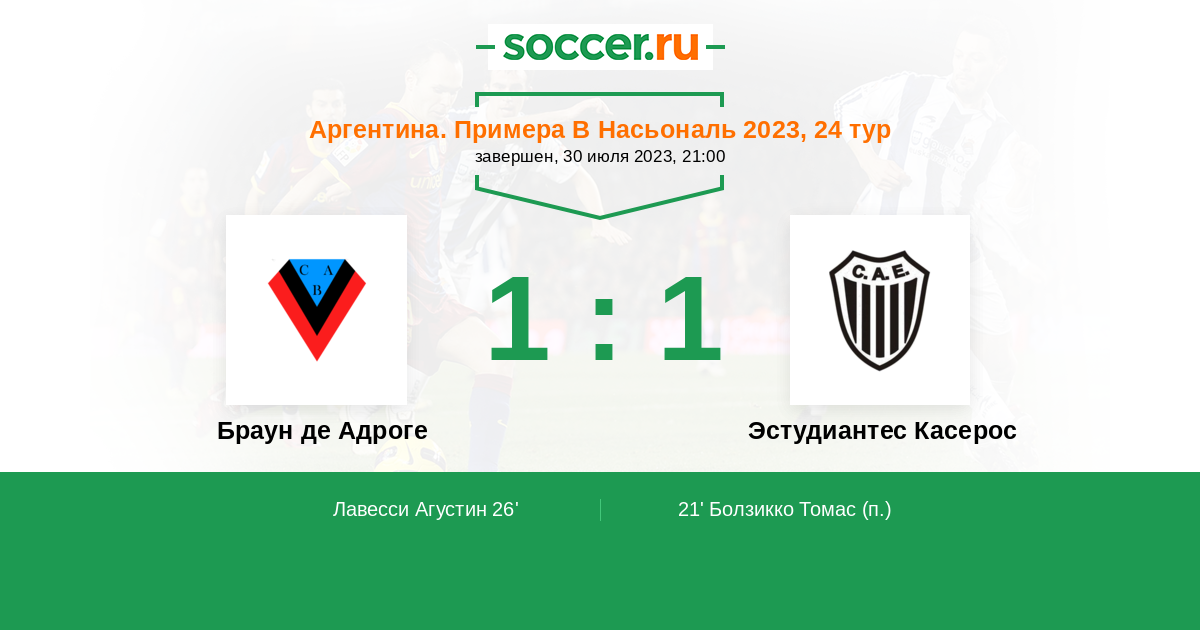 Протокол матча Браун де Адроге против Эстудиантес Касерос