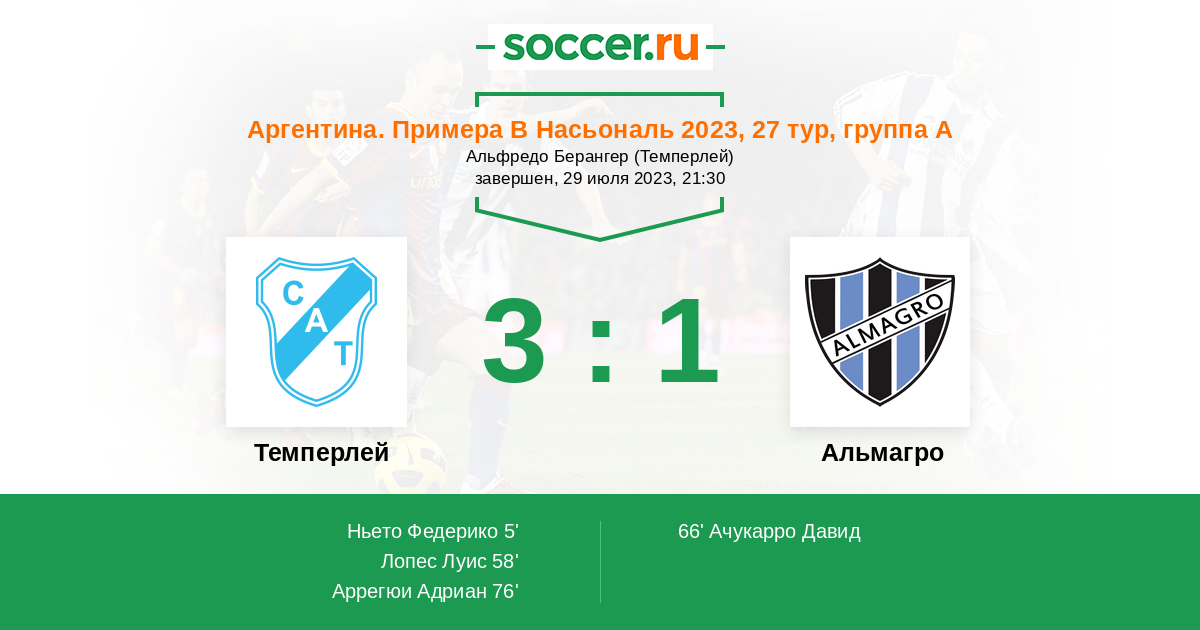 Протокол матча Темперлей против Альмагро
