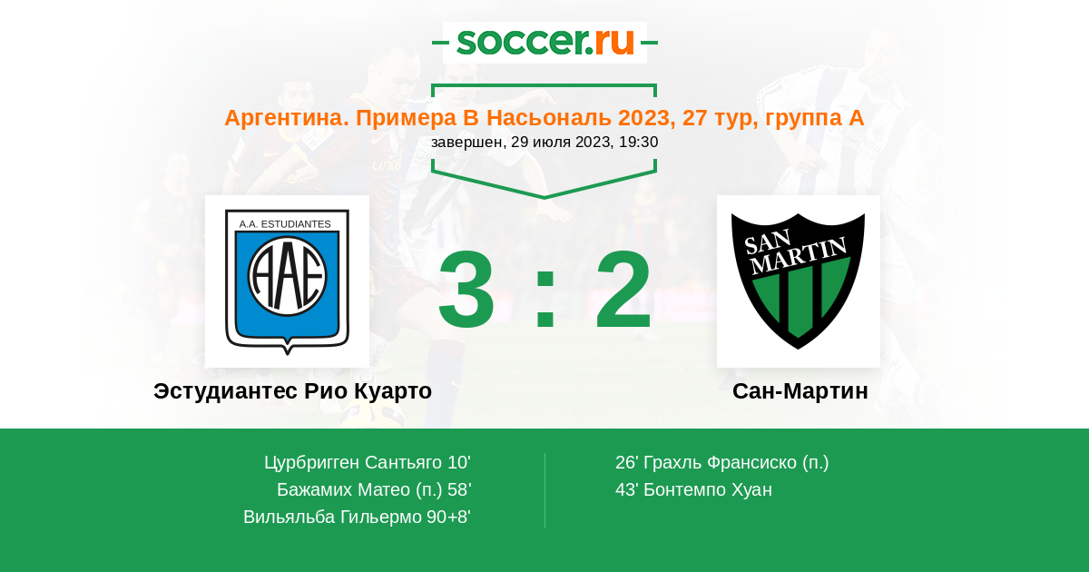 Протокол матча Эстудиантес Рио Куарто против Сан-Мартин