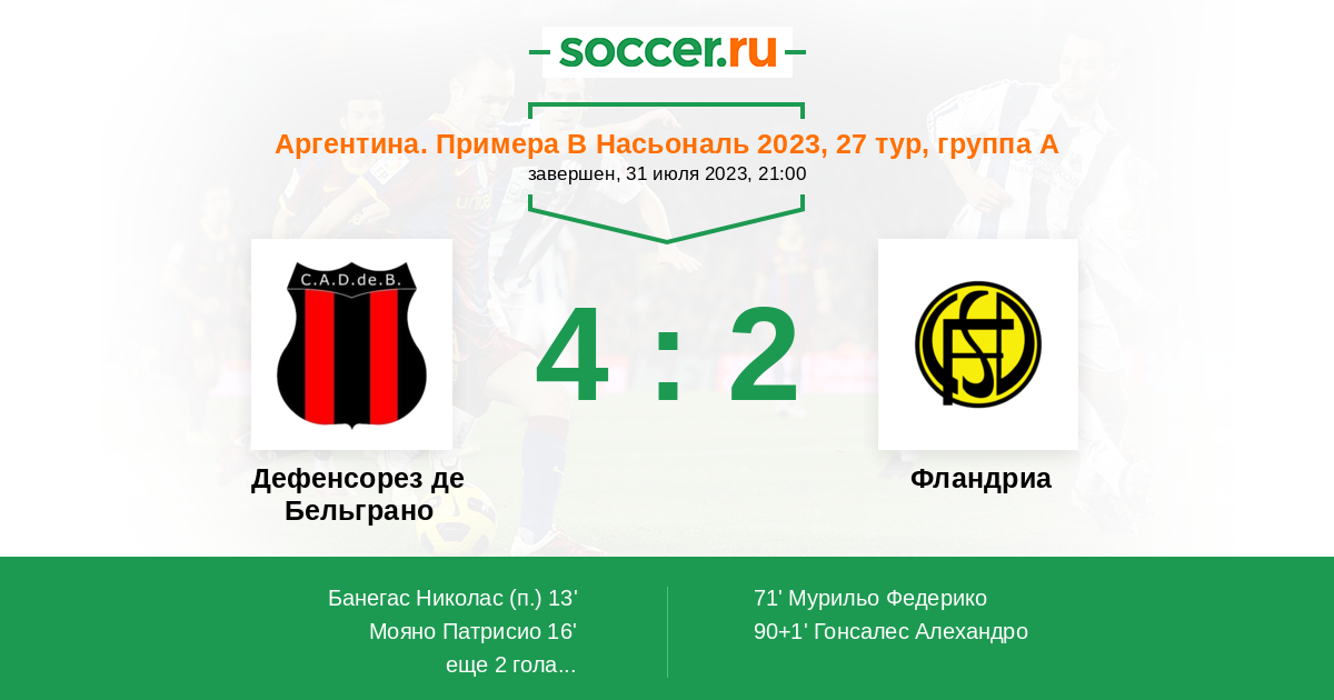 Протокол матча Дефенсорез де Бельграно против Фландриа