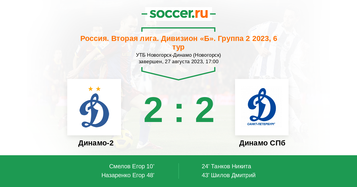 Протокол матча Динамо-2 против Динамо СПб