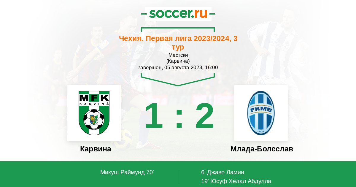 Протокол матча Карвина против Млада-Болеслав