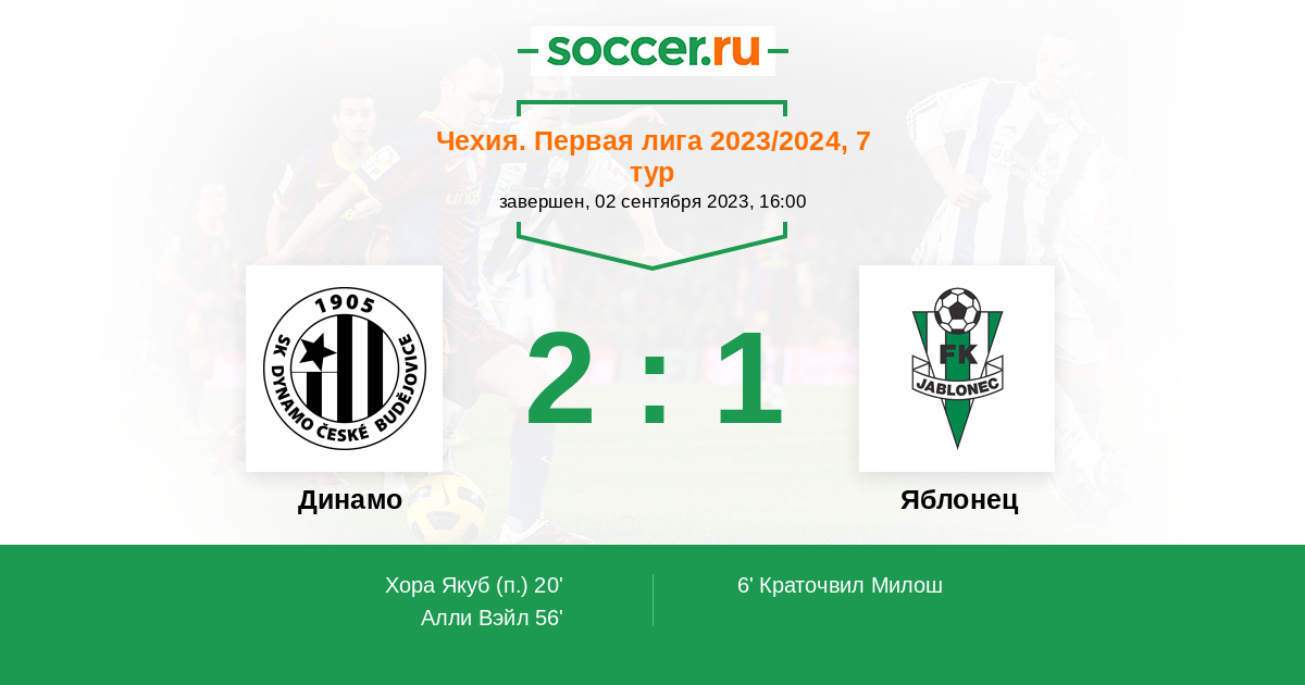 Протокол матча Динамо против Яблонец