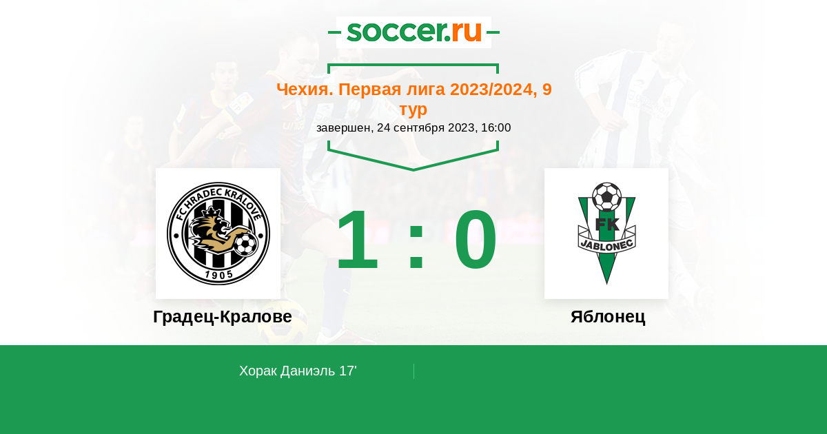 Протокол матча Градец-Кралове против Яблонец