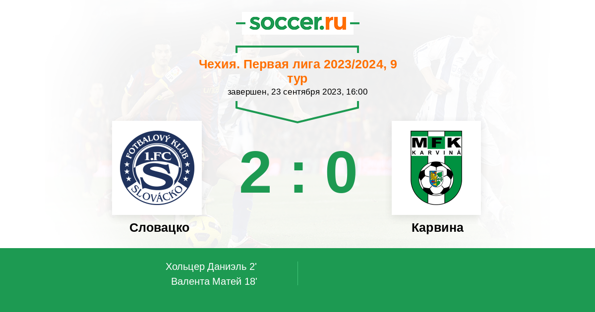 Протокол матча Словацко против Карвина