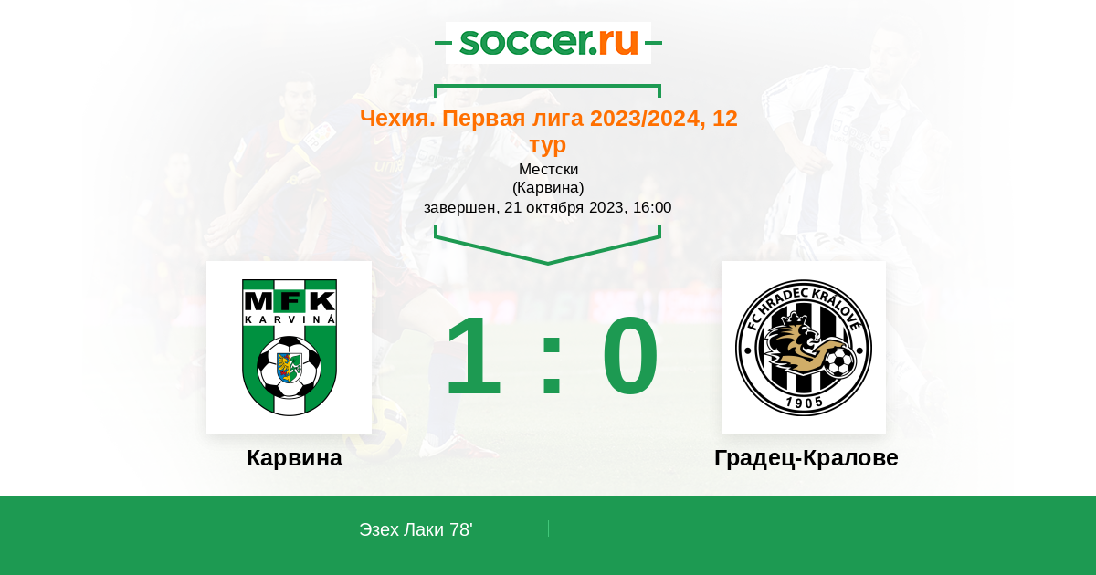 Протокол матча Карвина против Градец-Кралове