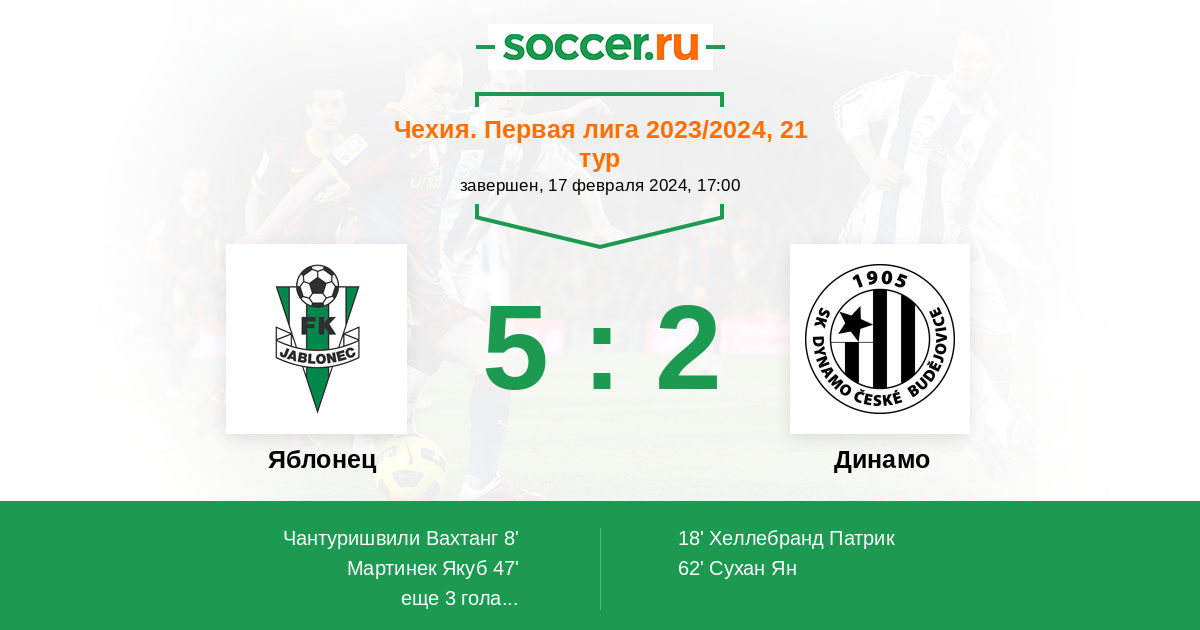 Гол90+2' (5:2) Дрчал Вацлав (23) (Хоушка Давид (8))