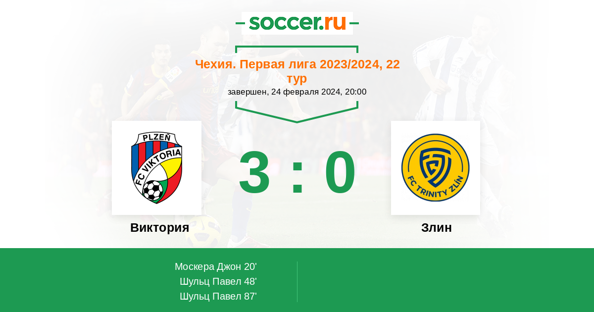 Протокол матча Виктория против Злин