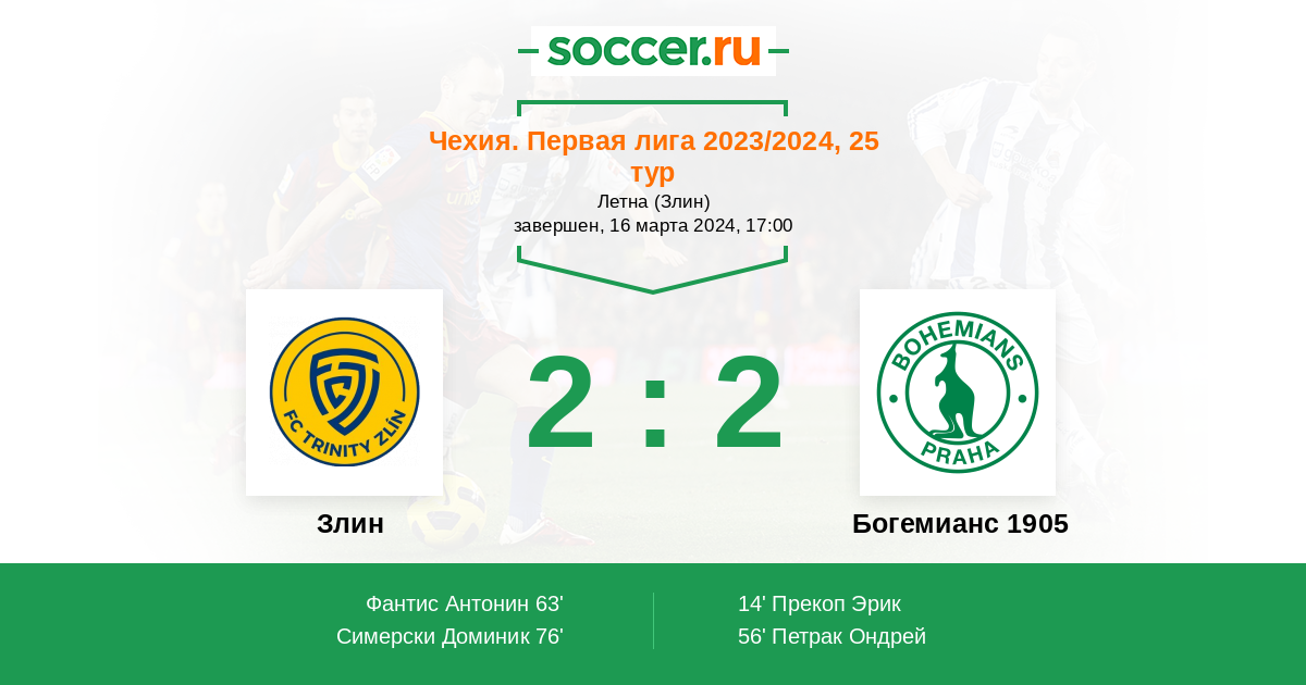 Протокол матча Злин против Богемианс 1905