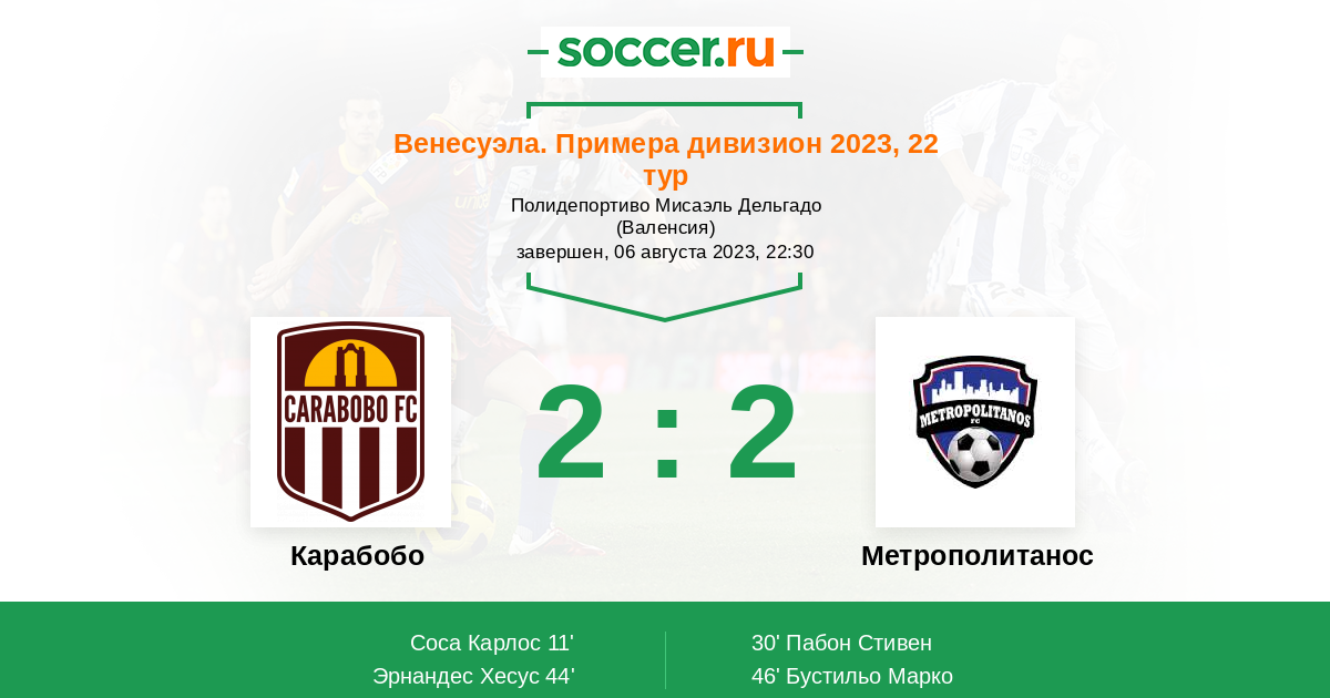 Протокол матча Карабобо против Метрополитанос