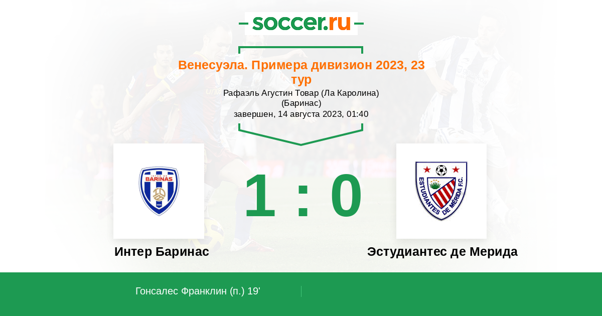 Протокол матча Интер Баринас против Эстудиантес Мерида