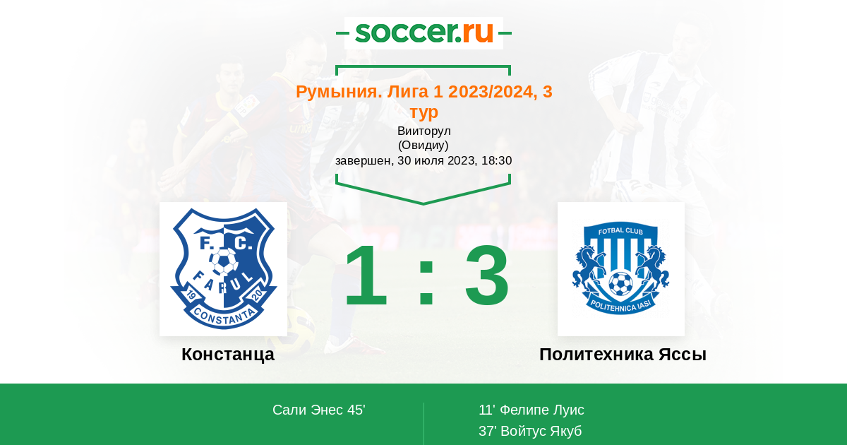 Протокол матча Фарул против Политехника Яссы