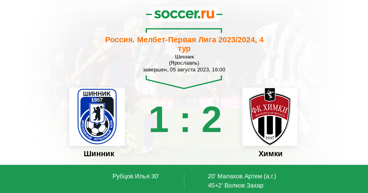 Протокол матча Шинник против Химки