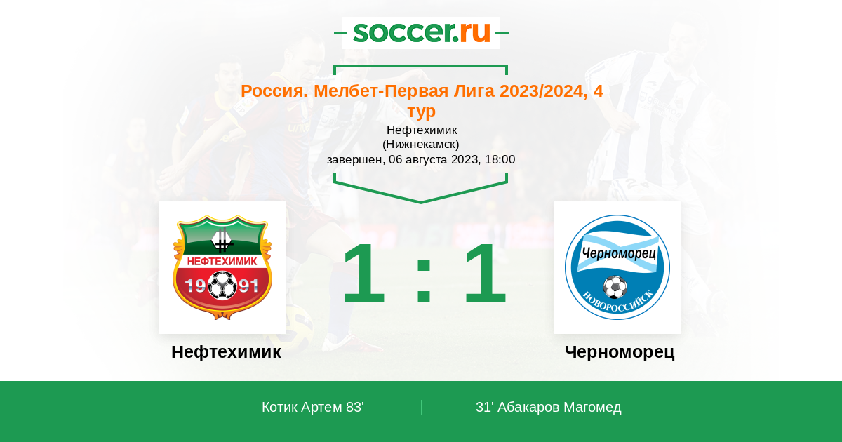 Протокол матча Нефтехимик против Черноморец