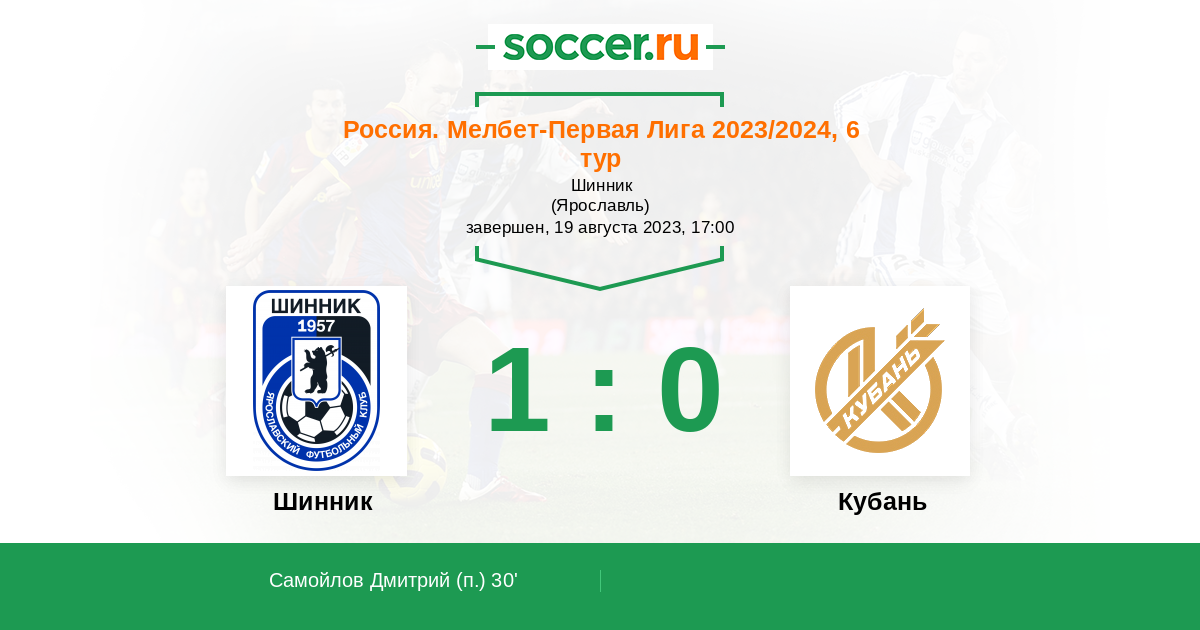 Протокол матча Шинник против Кубань