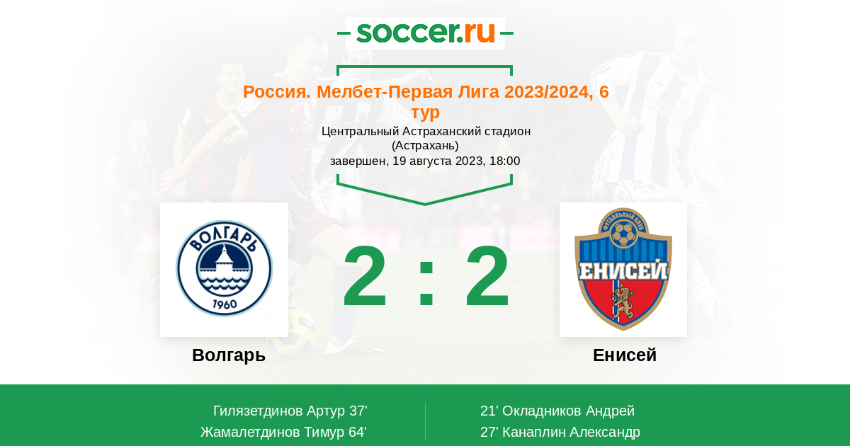 Протокол матча Волгарь против Енисей